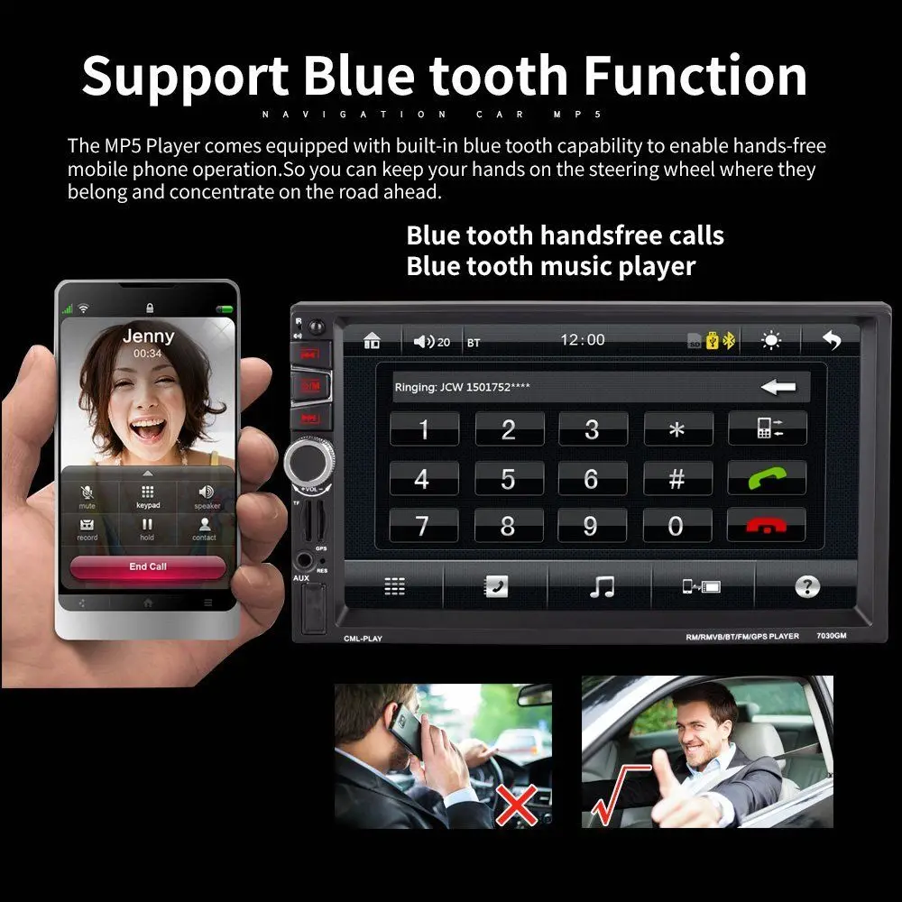 7" 2 Din Car Radio GPS Navigation Audio Stereo Bluetooth USB FM Autoradio Vehicle Multimedia MP5 Pl