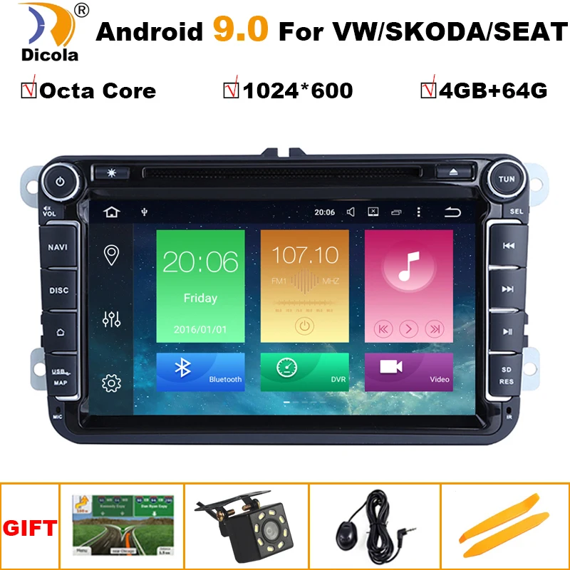 HOT SALE 8" PX5 8 Cores RAM 4G+64G Car Multimedia player Android 9 GPS 2 Din Car Radio Audio Auto For VW/Vol
