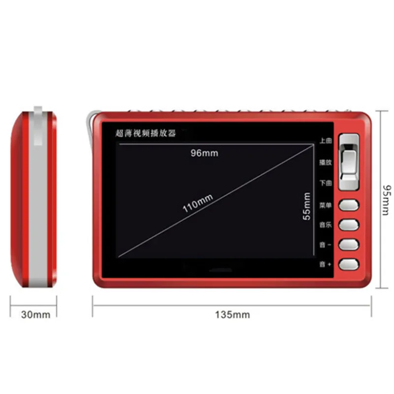 HD screen mp4 video audio player TF card U disk USB play back MP3 musical film machine FM radio spe