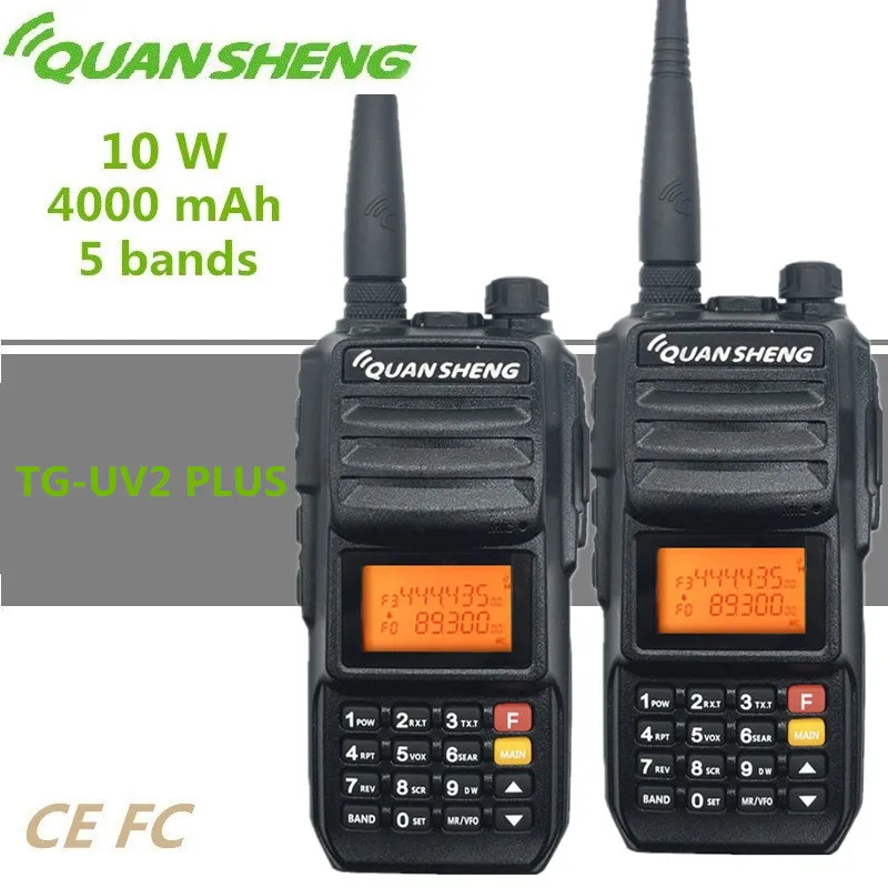 ORIGINAL 2PCS QUANSHENG TG-UV2 PLUS Walkie Talkie 10W 4000mAh Long Range HF Transceiver 5 Bands Police Scann